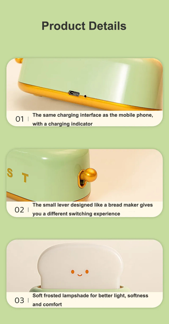 Creative LED Bread Night Light – USB Rechargeable Toast Lamp
